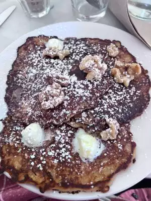 Lovely spot with nice big windows. Cozy quarters, but comfortable. Banana Nut Pancakes were extraordinary delicious and reasonably priced. Definitely recommend! Basic coffee, tea or mimosas:)