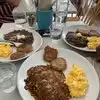 This restaurant is so popular people are willing to line up in the rain until the 3:00 closing time to order oatmeal griddle cakes in blueberry, apple, and cinnamon flavors - no syrup necessary. Each order includes two medium sized cakes, soft scrambled eggs, and two sausage patties. The interior is small and crowded. The service isn’t the fastest, but the food really is delicious. I recommend a visit to this restaurant if you’re willing to wait for a table.