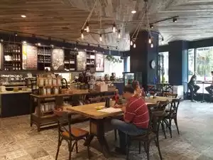 What a wonderful place for breakfast—clearly a hangout for locals—small and busy! The menu is not extensive—love the sausage—and they don’t have an espresso machine and they don’t serve decaf(!) but that is mitigated by pure goodness on the plate. Loved it!