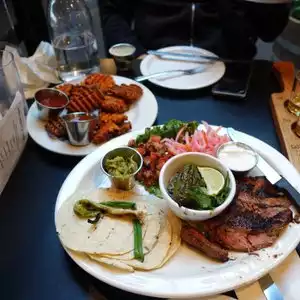 We got there around 5:30 on a Sunday. Got a booth immediately. They serve beer. They were out of rose, out of white wine so I got red and didn't drink it. I like spirits. We were 4 adults and one 3 year old who enjoyed his chicken nuggets. My husband had a Ruben sandwich, I had carne asada (tough) with some corn tortillas. My son had a large caesar salad. The place is lively, noisy, kids were well mannered while parents enjoyed themselves.