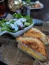 Stopped by while on vacation due to close location to our hotel. Upon entering there was a sign that said wait to be seated but not staff in sight. After a short while we were seated by a waiter whom was not overly nice but ok for my standards. I orderd a grilled cheese for $17. The grilled cheese had melted cheese on top which is a decent idea but just tasted burnt and super dry. The salad was a basic side salad you could get anywhere. My husand orderd the fish tacos for $15. The fish smelled really fishy (I know it sounds odd but the fish did not seem fresh). Also the fish pieces were really big on a tiny taco shell making it hard to eat. My husband had to use a fork to eat to avoid a giant mess. The drink menu while large was expensive. I do not know if it is because it was an extension of the hotel (I expect higher prices from hotel restaurants) but I avoided some drinks due to the cost. All cocktails were $14. I did get a nice cider for $6. My husbands beer was $9 on it's own. I was slightly shocked because after staying a week in California no place had drinks priced that high. For the cost of the food and drinks I expected a better experience and more enjoyable food.