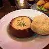 All four of us were “Hangry” after a long day of driving! After checking in, we walked conveniently across the street and enjoyed a relaxing warm meal without walking blocks. We make a point to try Calamari wherever we go, and theirs we ranked top of list! Lightly coated, crisp not chewy, the jalapeños added a nice element. Crab clam chowder, was hot and flavorful. Our veggie based diner loved the roasted vegetable rigatoni. Warm, contemporary pub atmosphere. Friendly service as well.