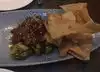The food and service we had here were good, but here's the issue - which won't affect many but is worth noting. Our waiter informed us that the choices that were listed as vegan, or vegan possible, were cooked in the same oil/cooker as other products and he would therefore say they were not vegan. My vegan wife was very appreciative of the info, but it severely limited her choices. A fine place to eat for others, just something worth keeping in mind.