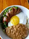 Food was really great. L Lemon pancake was worth the wait, with caramelized sugar and raspberry syrup. Bacon slab nice and thick. Only drawback was no mention of spicy sausage on Ramem Loco Moco, which was otherwise delish.