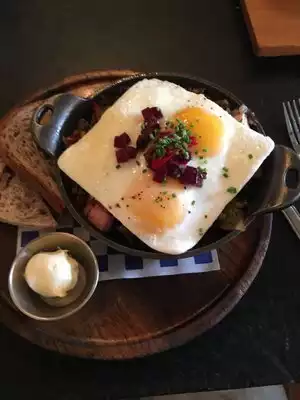 I had something involving eggs with smoked trout and it was absolutely amazing. Really well balanced ingredients which were very well cooked. Lovely little bits of fried potato and beetroot were involved as well. Would highly recommend stopping here for breakfast.