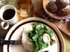 Since I am a vegan, Broder was most gracious to help me with my dietary needs. My friends had some great looking baked eggs. I did splurge on a deep fried pancake balls. They were exquisite. I had the most delicious greens with some great toast. I didn't feel left out when my friends were having eggs, bacon, pancakes, etc. It's a very popular place because people wait outside on Sundays to get a table. Seating is very limited but well worth the wait.