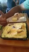 Terrible service. right from the moment we stepped foot in this terribly small restaurant, we felt glared up and down by the stoney acting host. When we were being seated, we requested that our bigger party be seated in an area that wasn't so crammed. They refused and said it was only for larger parties, then sat a party with the same number of who came in the same time as us. Once we ordered, the host took around 15 minutes to come around. Finally, he came to take our order in which I ordered one of the many items with cheese. I specified, "no cheese" please. Then, once the food was brought out the host brought out the only meal that did not include cheese, which would not make sense for me to note "no cheese" obviously being the wrong entree. Between this time, I was ignored and my water had been empty. He apologized, and 10 minutes later came out with a scorching hot pan without noting it may be hot. I took a bite, and lo & behold he brought out an item filled with cheese. Very very upset, already being delayed 20 minutes after the rest of my party was finished eating they tried to lie to my face and say that they had no cheese.