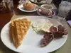 We visited on a cold rainy Monday around 11am. The staff was very attentive and let us know that we needed to make a decision of whether we wanted lunch or breakfast as they would be switching out soon. Fair. I elected to get a daily special of French toast-delicious-and my husband opted for chicken and waffles (not sure if it was a special or normal menu item). Our 11yo granddaughter opted for chicken sandwich. We all enjoyed our food immensely and the service was terrific. Will be back.