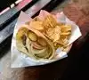 My husband and I loved this place. We both had a cheese burger in a pitta bread. The burger is fantastic, we visited this place twice whilst we was in NYC. The burger comes with chips ~ crisps to us From the UK. The cocktails are good! I would highly recommend this place!