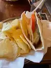 Stopped in here on a whim and what a treat! The drinks were very good and we liked the laid back feel. Lots of good people watching out of the window. Both my husband and I ordered hamburgers which were served on pita bread. I was skeptical at first how that would pair up but was very pleased with it.