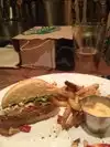 Very tasty roast beef sandwich on happy hour, unique and fun decor and a great menu variety. While some people go nuts over the fries- I would prefer shoestring fries and would not order them again but most people in the group loved them The service for the most part is great (one employee was pretty rude and unwelcoming though) Prices are very reasonable for the quality of food and venue location. All in all a great local business I would return to.