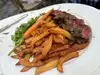 Great place to sit outside in Bryant Park. Rather on the expensive side (what isn't these days in NYC), but very good steak and fries.