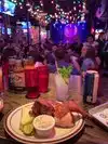 We ate barbecued ribs and some delicious chicken wings. It is a very lively and pleasant place where in the evenings there are concerts. They have a lot of beers and whiskeys. Highly recommended