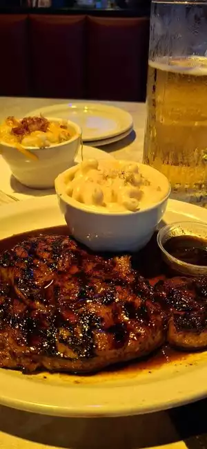 Well, it was not to busy for a Friday night so we had no wait at all . Our server did an excellent job at taking care of us and making sure everything was up to par. I can not say enough good things about his service. The Food was delicious. I had the bubba's 33 ribeye steak, fries, and potatoes and my wife had fish and chips with the side shotgun shrimp basket. The ribeye was delicious and tender and the fries and mashed potatoes were great. The fish and shrimp were delicious as well and the tartar sauce was great. We also had a sampler platter with wings, fried pickles, and fried cheese sticks. Overall, everything was great