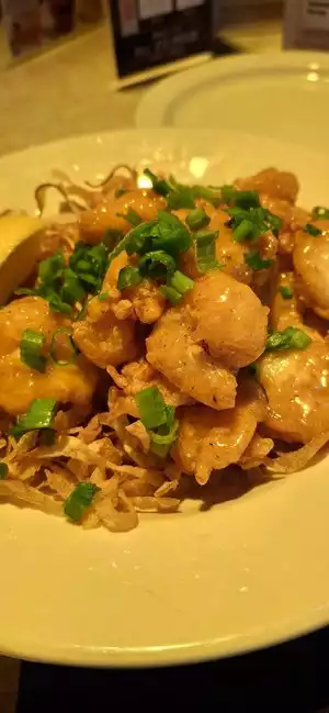 1st class service and the food was absolutely delicious. Couldn't fault anything. Tasted fantadtic. Recommend the tenders with fries and chilli. But tfe shrimp were great to
