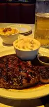 5 pm dash to find a tasty place to eat dinner without a long wait? Good luck on a Sunday in San Antonio! Just joking, coming back from a local event, I noticed Bubba’s 33 and decided to try a sports bar type restaurant. Be prepared to be greeted with a smile and welcome as soon as you step inside to check in. a 10 minute wait to be seated with a quick intro of who and what Bubba’s is all about before getting to the table! Awesome! I have to mention my servers name “Jo” as she was very cheerful and excited to explain everything Bubbas had to offer for the hungry customer. As usual I explain I am a first timer and ask what are the best items on the menu. She recommended the signature burgers and appetizers with a cold brew top it off. I read the menu asked how big were the the shotgun shrimp and the size of the main dish. She went out of her way to get a count of the shrimp! Anyway, I ordered the 14 oz signature steak, sides of broccoli and mashed potatoes and the shot gun shrimp. Medium rare is the way to go and to no surprise the expresso marinated ribeye was charbroiled to perfection! No joke, the steak was so tender, it cut like butter! And the taste was unbelievably perfect. Jo had seen me take the first bite and was surprised with my facial expression of total bliss. Yes it was that delicious! Any way, I finished the shrimp, half of my main dish and of course had my usual sweet tea with my meal. Yummy! The take out tasted just as good for the next days lunch! Another two thumbs up for a great restaurant and another thumbs up for having a military discount.