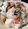 Stopped in for birthday dessert for our daughter-in-law. She ordered the super brownie sunday and it did not disappoint. The waiter said that it was made for 6 people to share but the four of us just devoured it (almost all of it). The crowned the birthday girl, gave her a gaudy red candelabra to blow out the monster candle and sang and Italian version of Happy Birthday. They did a great job. We even got a picture postcard of us celebrating.