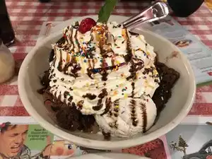 Seven of us were attending a broadway show and to be honest, tried for reservations at Tony's Dinapoli and then Carmines. They had no availability at any of their locations. Started searching for another family style place and Bucca Di Beppo came up. It was right around the corner from our show, so we figured we would give it a try. I had signed up for "offers" on their website and the day before heading in, we received a discount of 20% off our whole order. Would have liked some fresh bread to start but their garlic bread option was good. Their small dishes are made to share with 2 to 3 people and large dishes for 4 to 5 people. We ordered a large chicken dish and then 3 small pastas (one had chicken in it). We went home with leftover pasta. They also have side dishes so if someone is picky or just wants something that no one else wants, there's that option, too! They also had desserts to share. We went with the brownie sundae which was DELICIOUS and the chocolate cake, which was great, too. We will definitely be visiting again. Our waitress was very sweet, too.