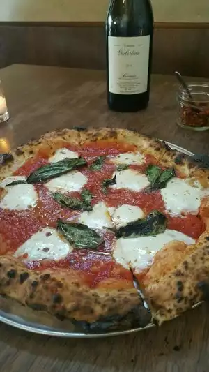 We dropped in after a walking tour and were seated right away. The staff was attentive and kind, and the Caesar salad was delicious. However, the pizza was just mediocre. The crust was underdone on the bottom (still somewhat raw) which was disappointing and problematic. However, the tomato sauce was bright, and delicious. Overall, probably not worth a second visit if we're in town, especially if you've had good, Neapolitan pizza before.