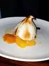 Curiously suspended in mid-air like a golden-tiled hornet’s nest clinging for dear life to the 3rd floor of a downtown office tower, is an oblique chocolate box that is home to Michelin star chef Bruno Devaillon’s newest bistro - Bullion. It’s hard not to wonder what a French bistro might be doing just a block-and-a-half from the Kennedy assassination site, and after overhearing a fellow diner climbing down from her white Yukon Denali proudly exclaiming: “I eat French food all the time. French fries. French toast. French bread. All of it!” I couldn’t help wondering just how much chef Bruno might have to “Tex-ify” some of his Franco masterpieces. But my fears were unfounded. After ascending the spiral stairway, you leave Texas behind you for an hour or so, and find yourself in a cruise-ship styled cocktail lounge that leads via the pastry rack to an ornate, yet unpretentious dining space with dark woods and golden trims, somewhere along the border of cosy and chic. The menu reads like any you’d find along la rive gauche with a few contemporary items wedged between stalwart classics like a hearty saffron and tomato Bouillabaise with a mix of seafood shells and scales served with shards of grilled country bread, and an immaculately charred Foie Gras Torchon complete with berry marmalade and squishy brioche. But nothing gets a table arm-wrestle match going like a bowlful of the most amazing Gougéres au Gruyere. These caramel colored puffs are lighter and fluffier than a cheerleaders’ pom-pom. And as they go about their miraculous disappearing act, it feels like a kiss to the lips from a cheese-dusted feather. I was intrigued by the notion of a leek salad and so had to try the Poireaux, which features a regimented row of steamed leeks trying their best to impersonate white asparagus, dotted with soft goat-cheese and roasted hazelnuts in a super light truffle vinaigrette. Even though this is grill country, the sumptuous Tournedos filet mignon with potato gratin and a trickle of mild oxtail au jus is an extraordinarily smooth cut that submits its salty umami without resistance. The Cabillaud & Brandade awash with a tart tomato and caper confit is just light enough not to kill the subtle cod flavor, and the Agneau is an incredibly toffee-tender lamb loin, very gently accented with a sparkle of anchovy vinaigrette, accompanied by a bright and crunchy summer succotash. If you haven’t picked up on it yet, there was enormous restraint from over-flavoring the food – true to the kitchen’s mission to prepare dishes that don’t overshadow the key ingredients. Even the table-side flambéed guava and coconut ice-cream centered Baked Alaska is meek, mild, subtle and delicate.