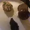 You are served an assortment of breads. The sour dough is best. Hard to get dinner reservations so we opted for lunch. Doorman to welcome you. Spiral stairwell or take the elevator. Try the gruyere puffs to begin. I had risotto ....can’t resist risotto.