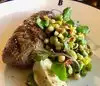 My colleague and I sat at the bar and shared a few things as we wanted to try different items. Our entrees were delicious (cod and NY strip)...the beef was tender and perfectly cooked to my liking (medium rare). You can only order from the full menu at the bar but can order lighter bites in the lounge.