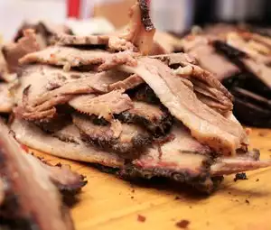 We called order in from hotel next door. Still had to wait over 30 minutes while in restaurant to pick up to go order. This was after waiting 30 minutes before we walked over. The pork was good. The brisket was not. Brisket really fatty and had unusual flavor that I have not recognized before in smoked meats. Husband and I own a pellet smoker so we smoke our own meat often. Anything from Brisket, Whole chickens, pork butts, and turkey breasts They had sold out of the smoked chicken. I wish I had just ordered a huge amount of their cornbread 'cause it was fab!