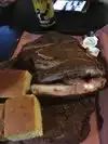 Food was good, but ther was no other sauce that wasn't FULL of pepper. Way too spicy. There was a bucket in the middle f the floor for a leaky roof. The corn brad was cold and tasted old. My husband ate ribs and he said they were good. I can see hat place packing up with it being across the street from the baseball stadium. This restraint is in the middle of nowhere and after dark, I wouldn't feel safe walking outside.