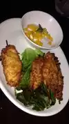 While looking for a place for dinner, I was going to turn around to cross the highway here. Saw the outside, said they should have the olympics on with all their TVs. Went on a Sunday night. If we could have watched the olympics, we would have been happy. But the food was amazing. I had coconut macadamia nut crusted skewers and they were amazing. Not at all what I expected from the menu. My mom ordered their Bully Burger, which was huge and delicious. Came with two sides which were generous portions. We choose to share the fries and side salad. More than enough food and we both took some home.