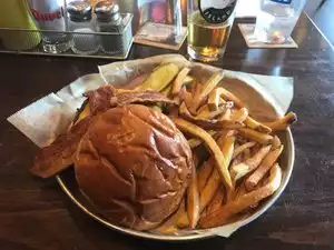 The burgers was delicious but the Parmesan truffle fries were the best fries I've ever eaten. Great casual atmosphere and delicious food, great service. I recommend the bison burger with arugula and goat cheese and definitely splurge on the fries.