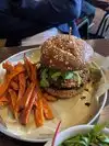 We had a group of 13 and made a reservation at 5 o'clock and the table was ready for us when we got there. That was the best part of the meal though. It took some time for us to get a server and he was not very good during the whole meal carrion refills came slow and it took a long long time for him to take our order a. Once he did take our order it took a long time for him to entered into the computer which was right next door table because he needed to get a manager to help him perion the menu is a paper menu and on it it says that fries come with all burgers. There was an incident where they were out of bison meat soul away or had to come back and retake someone's order who had ordered the bison and he said that fries did not come with the burgers. We asked to speak with a manager and the manager looked at the menu where it was taped and he said that that was definitely a misprint. Even though it was printed at least twice on the menu. When the person a party re ordered they were given a whole different menu that was not paper and was in fact a Tri fold plastic menu. She said that there were a lot more options on that menu than the one we got. Not sure why that is. I ordered a powerhouse veggie and it was not very good. My wife ordered these shrimp Burger and it wasn't very good either. The fries were OK. The fries are indeed extra. It was very very expensive we thought for a below average meal and below average service.