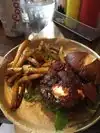 Try the Fireball Burger or the Al Pastor Burger for a great taste sensation. The Poutine Fries are fun to try, too!