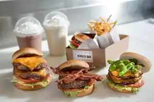 Burger bar has a good burger, good fries and really good onion rings. It is quick. In door and outside eating area. Great for a quick bite.
