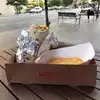 Great location...Fast service...Reasonable prices. First time I visited I was a guest. Second time I visited I felt like Family. Friendly crew, with a good customer-centric ethic. It has a storefront that opens onto the sidewalk, perfect for a quick lunch, or a more leisurely dinner. Sidewalk dining only. Eat there, or take it with you. Try one of the added special sauces that range from mild to super hot!