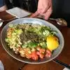 We were told to get here early or we'd wait in line to get in. We got there early and still waited. And it was worth it. Super yummy vegetarian and the meat eaters were happy as well. Interesting, tasty salad.