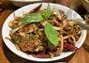 Came to this restaurant on someones recommendation. Menu sounded strange, so we were apprehensive.Told to order the Tea Leaf Salad, and we did. Ingredients sounded very strange. Did not look appealing when it was brought out, but better after server prepared and tossed it. This was the best salad I have ever had. Every bite has a different taste with each ingredient you get, and all ingredients will be tasted, not just mashed together. It is clearly a party in your mouth. Every plate we saw being served looked delicious, but I think this is the clear winner.