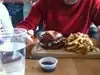 WOW what a great selection of different burgers. Pork, Shrimp,Turkey something for everyone . You can choose from a variety of meats/Shrimp with a variety of sauces/spices and breads. Knowledgeable staff very helpful when you have to make your choices. Seating is limited but moves out quickly so if its full when you get there you will have a seat by the time your fresh cooked burger arrives. A large fry order will easily serve four.