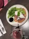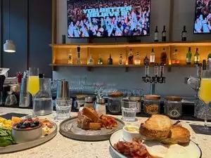 Yummy food and fun ambiance. I sat at the bar and watched the tennis match while ordering a brunch meal and latte and espresso. Itās a fun chill vibe