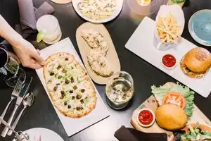 We arrived in Parc 55 really late, we did not know San Francisco and wanted food before bed and thought that the restaurant on site was the quickest option . . . we ordered 2 burgers (okay, warm but nothing special), some hummus and pitas and some wings. 5 soft drinks and a pizza . . . $240. .. . definitely an expensive mistake. Gave 2 stars as the staff were great and the food was fine - but not $240 worth by a long shot