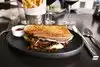 Good for people watching; on the 2nd floor of the Parc 55 hotel - tons of windows - looks out over Market St a bit. Open seating; wherever you can find space. Food is average; but variety of choices - coupla good burgers; crab toast; solid flatbreads; some good salads; and a unique thing called "surf, turf, and earth" which has fish tacos, steak, and a vegetable chimichanga. Connected to a bar; so a variety of drinks - but hotel bar style. Usually not all that crowded; locals don't seem to come here - generally hotel guests.