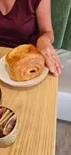Breakfast on top. Chocolate breads are delicious and very large. Extra milk chocolate and very beautiful. The place is nicely decorated and quiet. The staff is efficient.