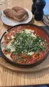 This is a very nice café, they gave me a table on the street and I enjoyed people watching. The waiter was AJ, he was very friendly and welcoming. He has a great sense of humor. I has a French shakshuka which was very good.