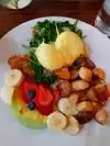 A nice cafe for breakfast, we had the two eggs any style and the eggs Benedict with sauteed spinach. Everything was delicious, and the service was good.