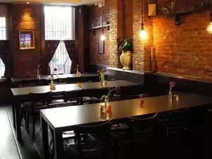 Small cafe. Food was not edible. I had the Rouladen. The meat was so tough and dry I couldn't eat it. It also had a raw piece of bacon rolled up in it. It had a lot of salty, no flavor gravely over it. Found one small piece of pickle. The red cabbage was warm and maybe out of a can. The breaddumpling was a gob of bread. I love German food and was really looking forward to eating here. My husband's meal wasn't much better. You we could think that for $18.99 the food would be good. What a disappointment. So sorry