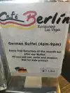 Lunch is awesome. Buffets AYCE is a bit problematic though. Read why. 583619201 The luncheons, for the most part, are pretty good. My absolute favorite is the Wienerschnitzel sandwich. Consistent and very well priced. The bratwurst sandwich is too costly for the quality of the product. Equally so, do not get the currywurst as it is not beef but pork and just doesn't live up to the billing. What is a real problem is their version of the schweinshaxe. It is NOT a pork knuckle and never has been since first placed on the menu a few years back. I tried it three different times to see if they would use the knuckle ( costs more ), and they just don't. A much cheaper version of the pork's upper leg is used and it does not have the taste nor the fat flavor this dish is well known for. The ham hock is the end of the pig's leg, just above the ankle and below the meaty ham portion. It is especially popular in Bavaria as Schweinshaxn.) Photo of the real deal and Cafe Berlin's is attached hereto. The price is what really kills the entire experience. I would NEVER recommend anyone try it. Dinners, I find too expensive for the serving portions. Others may too, as I hardly see it full when I am in their neighborhood. The Warsteiner Dunkel beer is an absolute must if you like dark beer. IMO one of the world's finest next to the Brazilian, Xingu. Since Tripadvisor does not allow repeat revies within 30 days, this review was for two separate visits. On a positive note: There is a frequent diner card that upon receiving 10 stamps ( one stamp for each meal ) a free plate can be ordered. Value limited to average luncheon menu pricing.