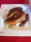 I had the schnitzel sandwich and my son had the Nuremberger sandwich and a pretzel. The pretzel was a great appetizer but the schnitzel sandwich bun was too dry and crumbly. The Nuremberger sandwich was a much better meal. All prices were reasonable.