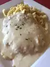 Once again Cafe Berlin comes through! My wife and I had the Rahm Schnitzel with Spaetzle. We had it for dinner so you get a double portion of the lunch entree. The spaetzle was excellent and so was the schnitzel. We also had a house salad with a German oil and vinegar dressing which was very fresh. We then had the apple strudel for dessert and it was excellent as always. I keep coming back here as it's one of my favorite places and the food is always fabelhaft!