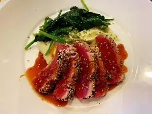 Perfect Mahi and Mango salad. The Mahi was seared and seasoned perfectly. The rest of the salad was just as tasty. Reasonably priced with a nice selection. Going back there for lunch again tomorrow. Excellent service, and very friendly staff.