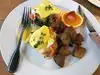 Family brunch consisted of tasting their quiche of the day, French Toast, Soup of the day and Omelette with Chicken/Pork sausage... Authentic flavours with each dish more than meeting our individual expectations. Accompanied by a carafe of house wine... attentive and friendly service - all told, a worthwhile visit and experience.