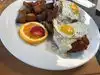This isn't your average egg & bacon breakfast. It is very french and delicious. I had eggs in a red wine sauce (no I did not get drunk) with French Fries. Want something different eat here you won't be disappointed.